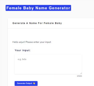 Get a perfect name for any female baby you want and wow your friends and colleagues using the Female Baby Name Generator custom tool at a very minimal cost. Create amazing names for female baby free today. No credit card is required.