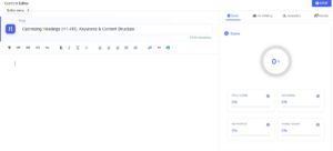 Once inside the SEO Editor, you will notice multiple sections designed to guide your optimization process. The Editor Area allows you to write and edit content freely. The SEO Score Panel displays how well your content is optimized. The Analysis Tabs provide insights into headings, keywords, and structure, while the Suggestions Panel offers real-time improvement tips based on competitor data.