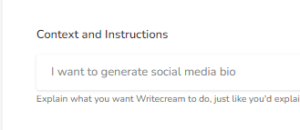 Use Writecream’s Command Mode To Generate Bio for your social media accounts & Much More