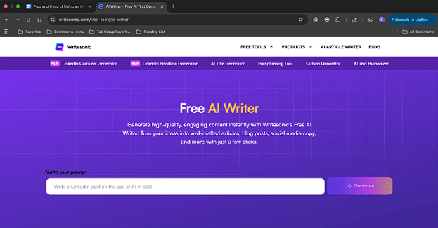 Writesonic focuses on the intersection of SEO and personality, making it a strong choice for “Meet the Team” pages or author boxes.