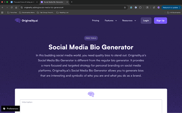 Originality focuses on human-sounding content that’s designed to pass AI detection filters. This is a critical tool for guest authors or academic professionals who want to ensure their automated bio doesn’t trigger AI-written red flags.