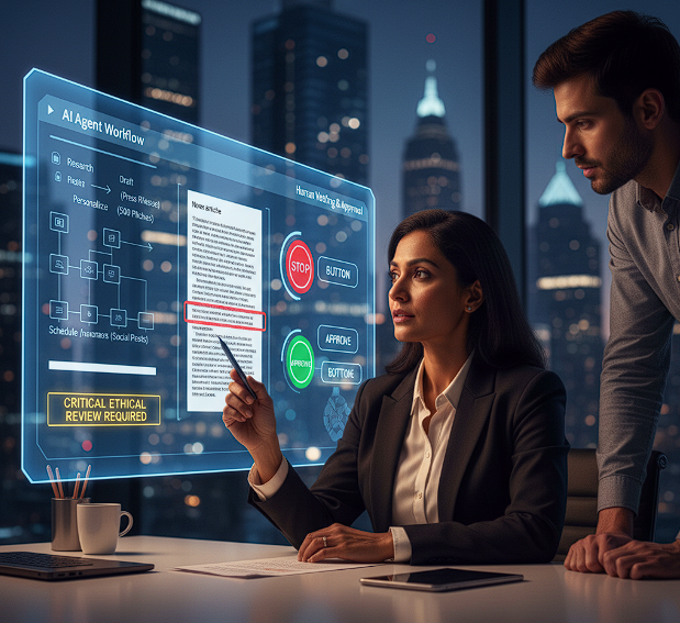 The PRSA Code of Ethics must now be applied to non-human actors. If an Agent uses biased data to prioritize outreach to specific demographics, or if it scrapes proprietary information in its “research” phase, the agency or brand is ultimately accountable. We must establish human-in-the-loop (HITL) checkpoints that are mandatory, not optional, ensuring that a communications professional approves the final action (e.g., sending the pitch or publishing the statement), even if the Agent executed the research and drafting.